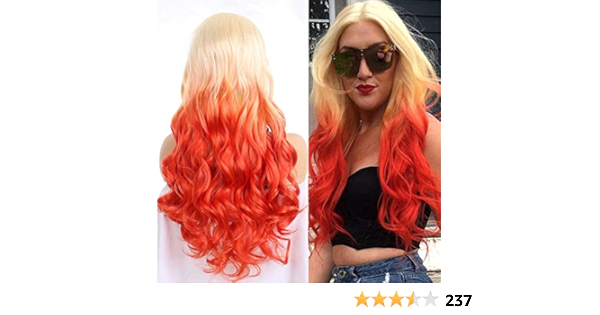 Amazon Com Aboree Blonde Ombre Wig Long Wavy Synthetic Hair Wigs For Women Cosplay None Lace Wig Blonde Orange Red 24 Inch Beauty Personal Care